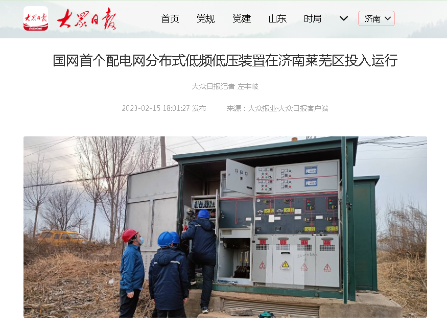 济南益佳农服航空科技有限公司参与实施的国网首个配电网分布式低频低压装置在济南莱芜区投入运行